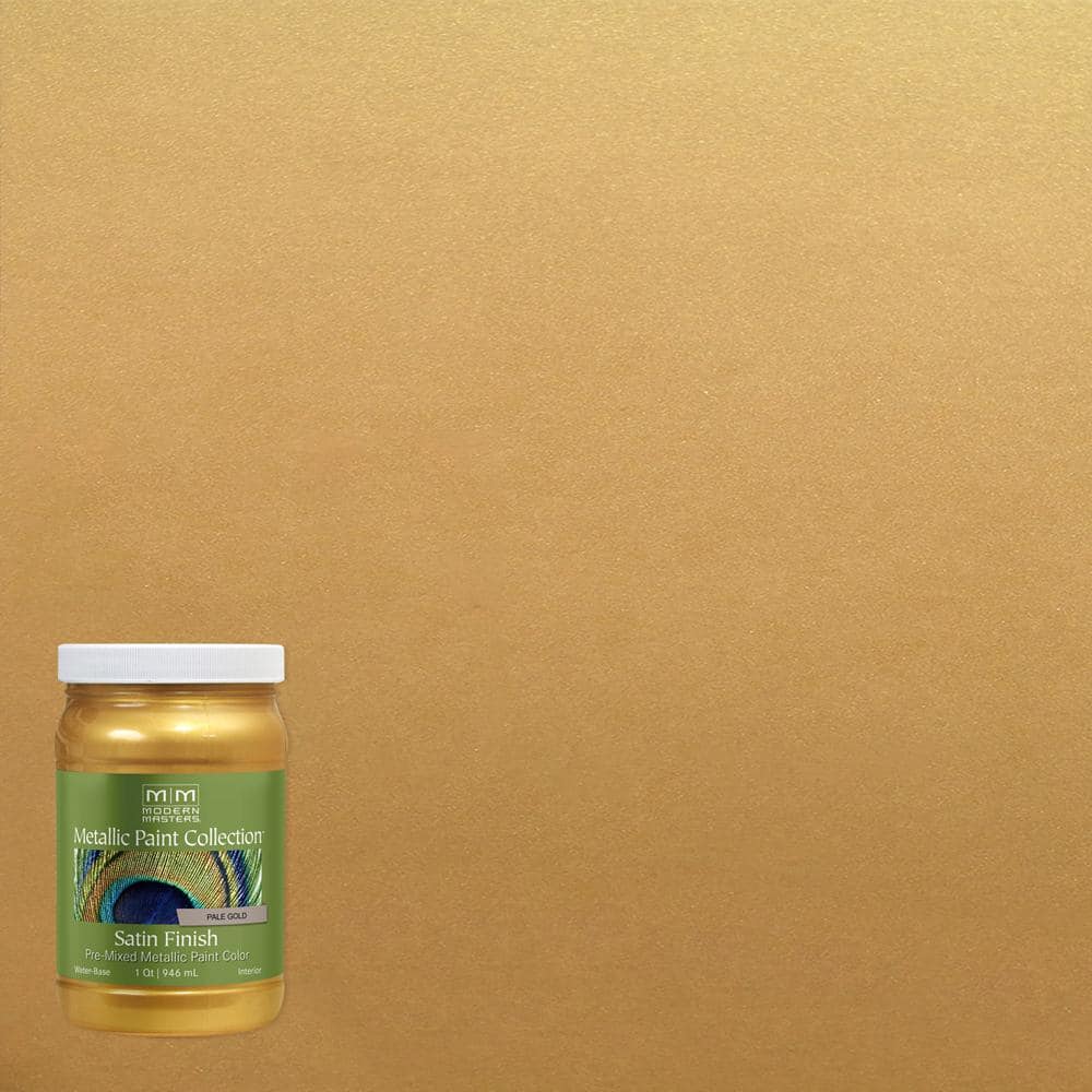 Modern Masters Metallic Paint Satin Pale Goldis a unique, water-based, non-tarnishing color. (If an aged metal finish is desired, use Metal Effects.) Water-based, low VOC paint for interior or exterior use. Easy to use - apply with a brush, roller, or sprayer.
